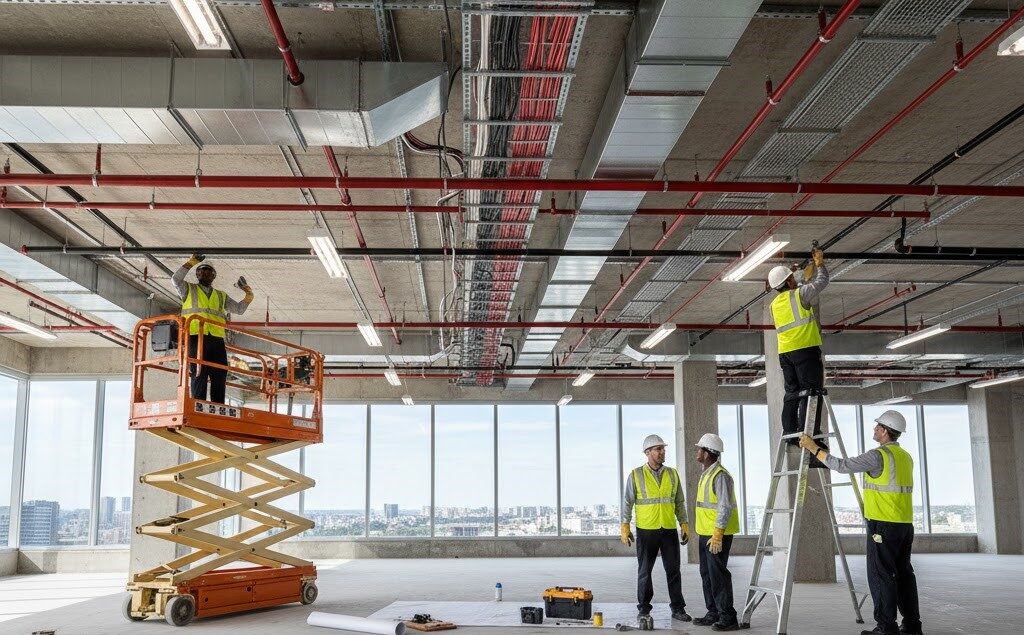 Integrated MEP contracting solutions delivering HVAC, electrical, plumbing, and fire systems for buildings, warehouses, and factories, meeting DEWA and DCD standards.